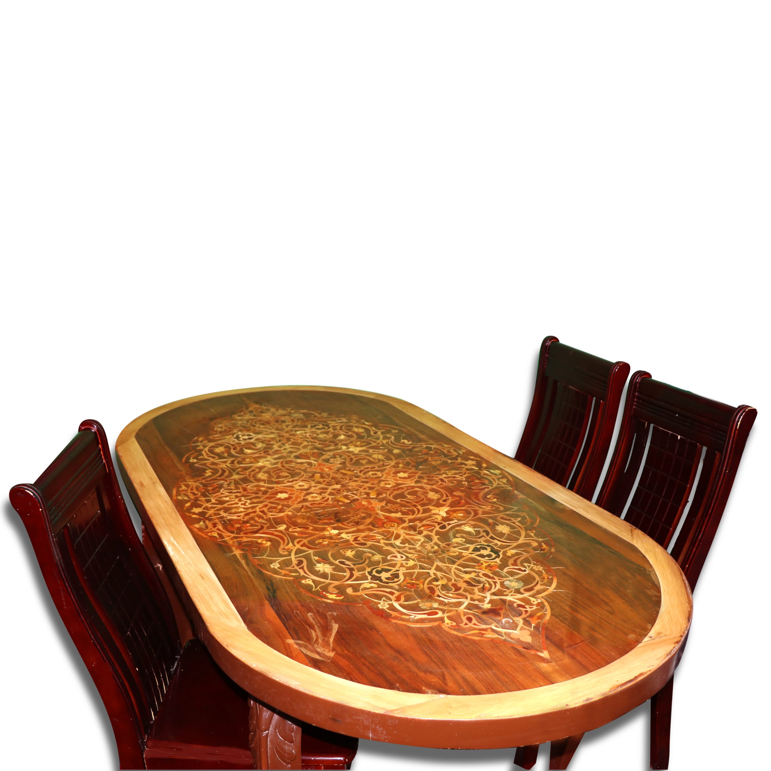 این میز معرق با طراحی اسلیمی و گل های ظریف در دل چوب طبیعی، جلوه ای از شکوه هنر اصیل ایرانی را به نمایش می گذارد.