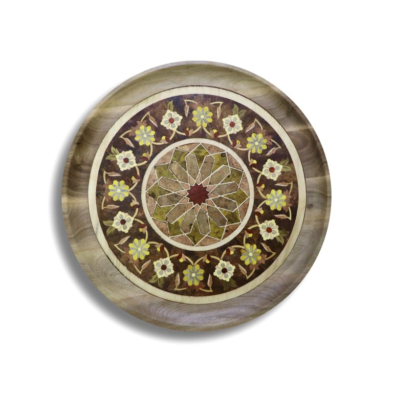 سطح داخلی کاسه و سینی به گونه‌ای طراحی شده که نور را یکنواخت بازتاب دهد و نقش‌های معرق را برجسته‌تر کند؛ این ویژگی باعث می‌شود در نور شمع یا لامپ‌های گرم، درخشش چوب و بافت‌های طبیعی به‌زیبایی دیده شوند.